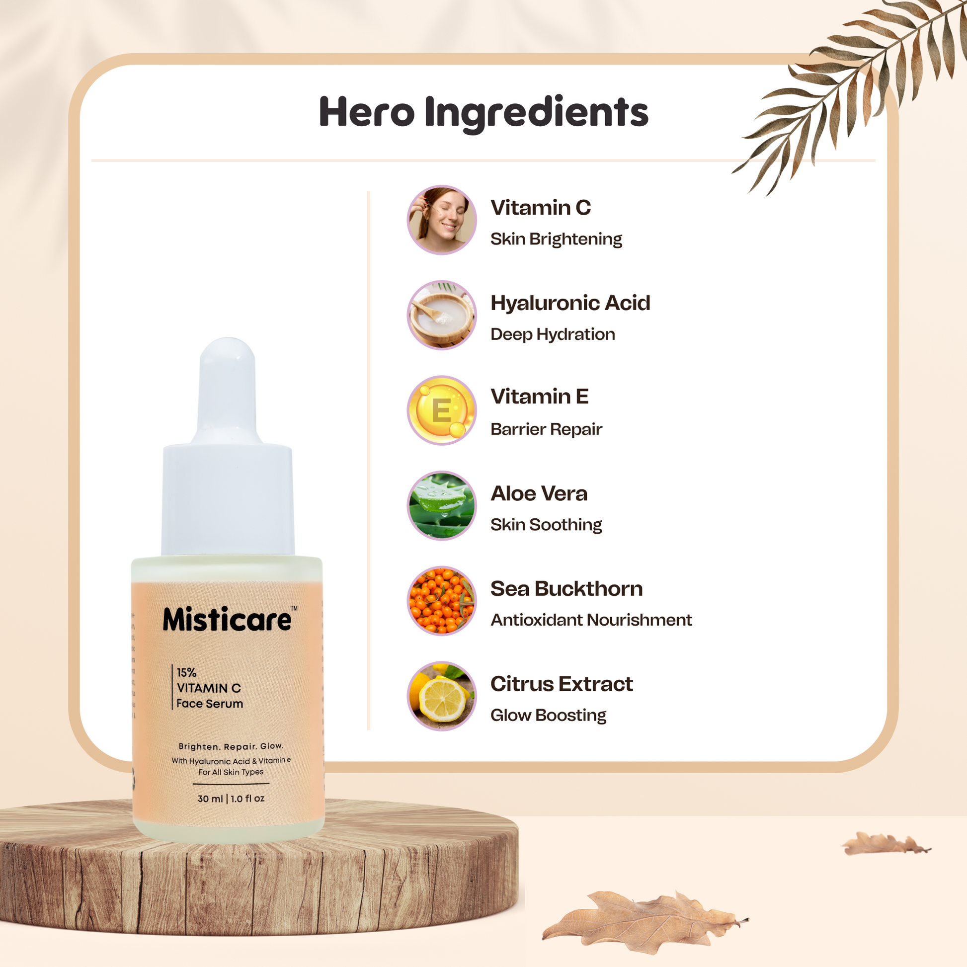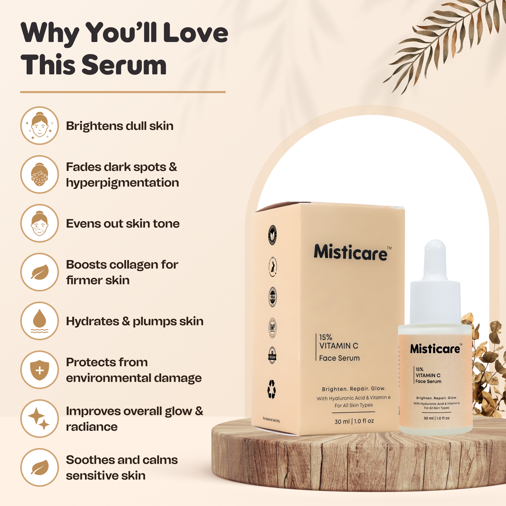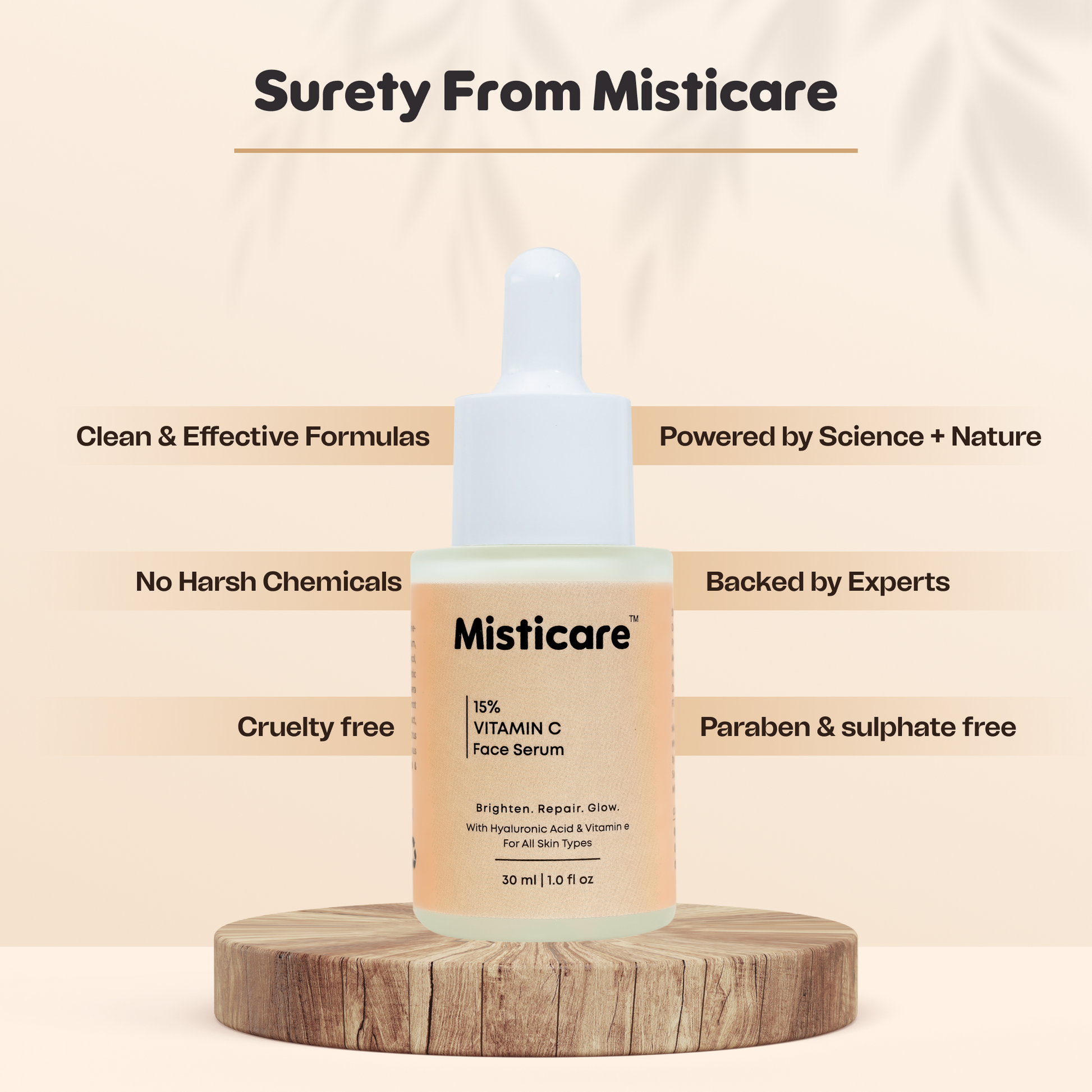 Misticare 15% Vitamin C Face Serum with Hyaluronic Acid & Vitamin E