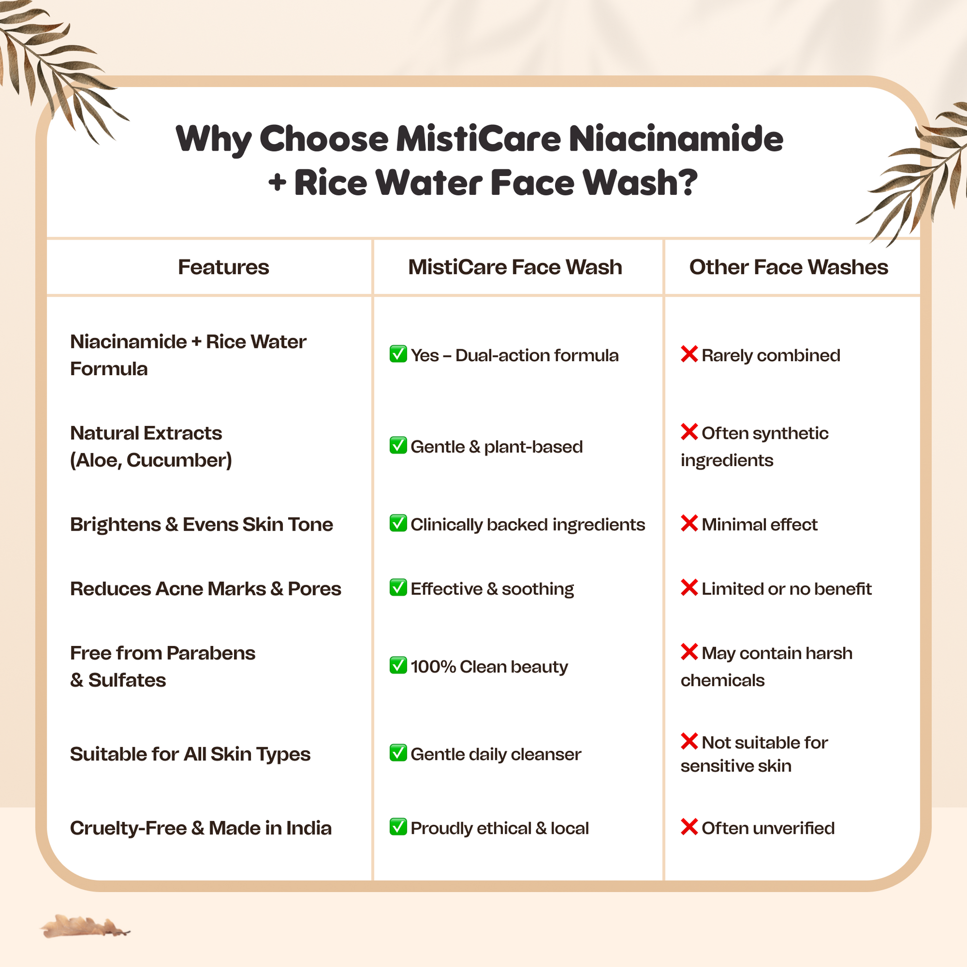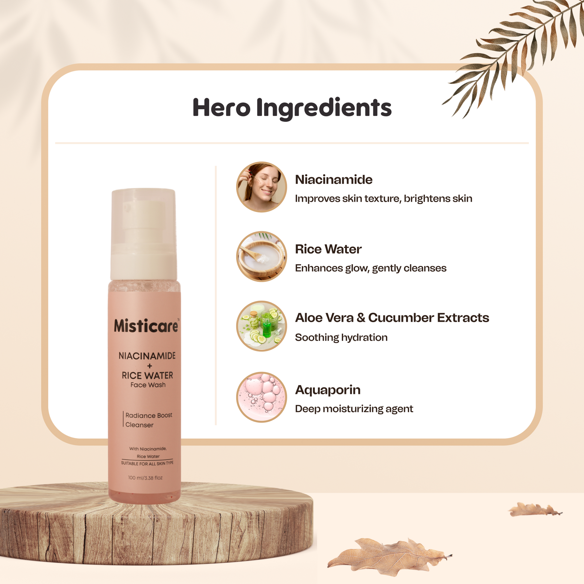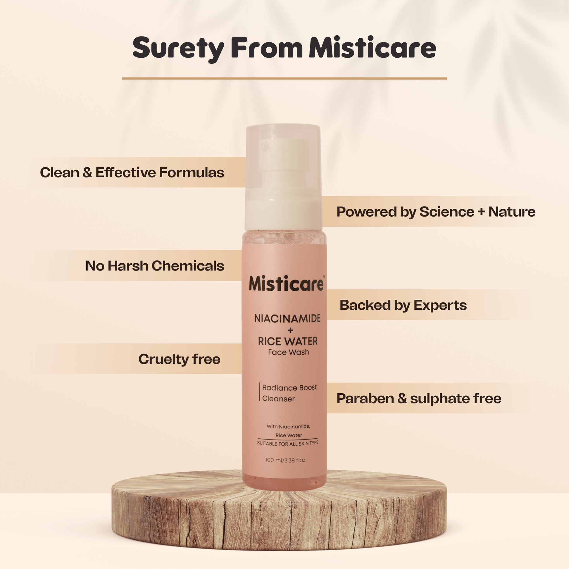 Misticare Niacinamide + Rice Water Face Wash | Brightening & Hydrating Cleanser